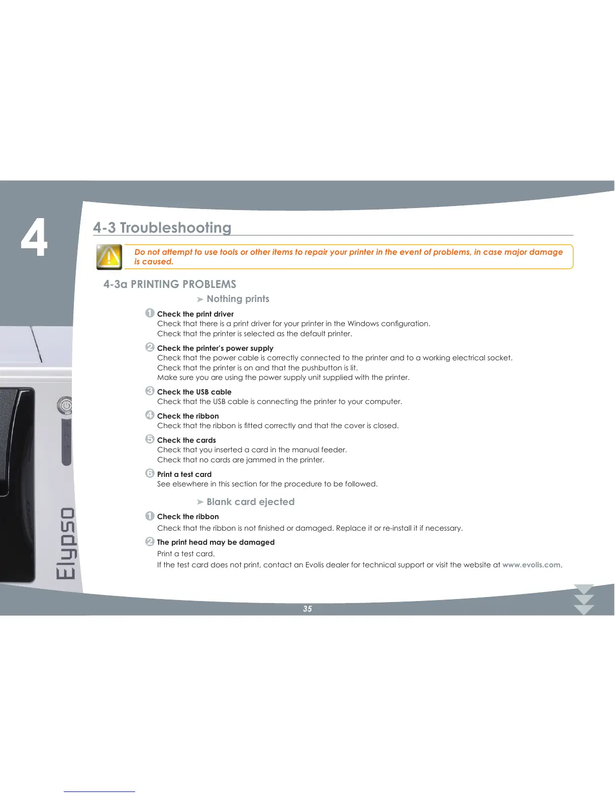 If the test card does not print, contact an Evolis dealer for technical support or visit the website at www.evolis.com.