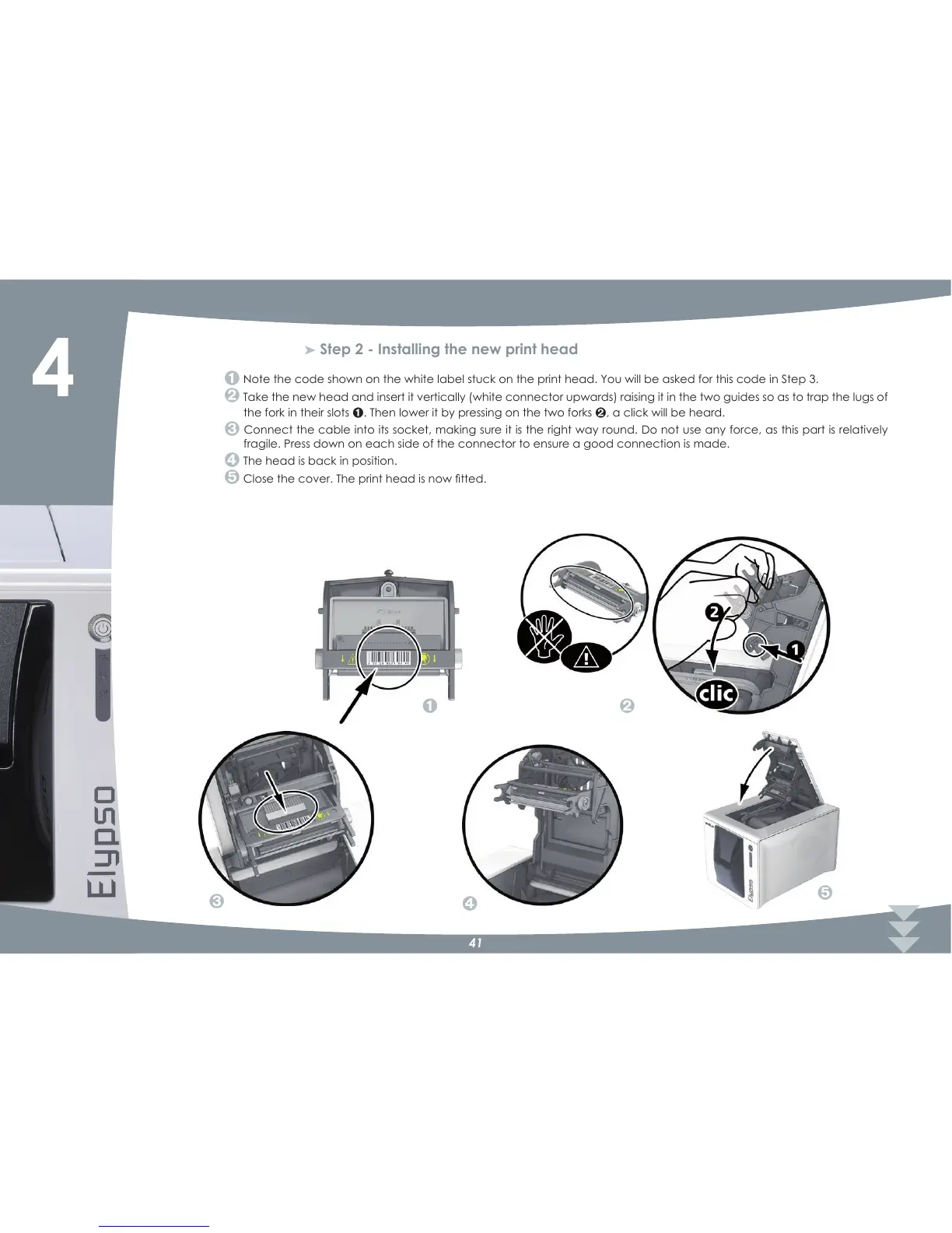 Take the new head and insert it vertically (white connector upwards) raising it in the two guides so as to trap the lugs of