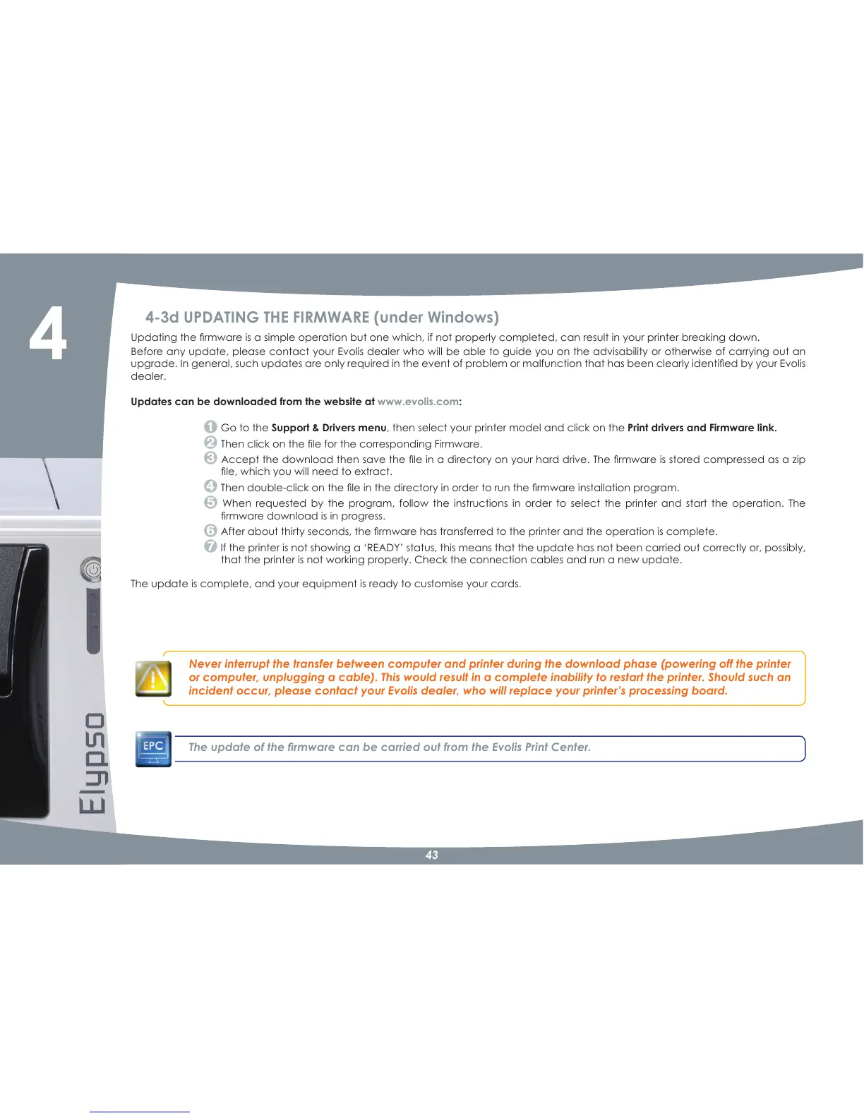 7KHXSGDWHRIWKHÀUPZDUHFDQEHFDUULHGRXWIURPWKH(YROLV3ULQW&HQWHU