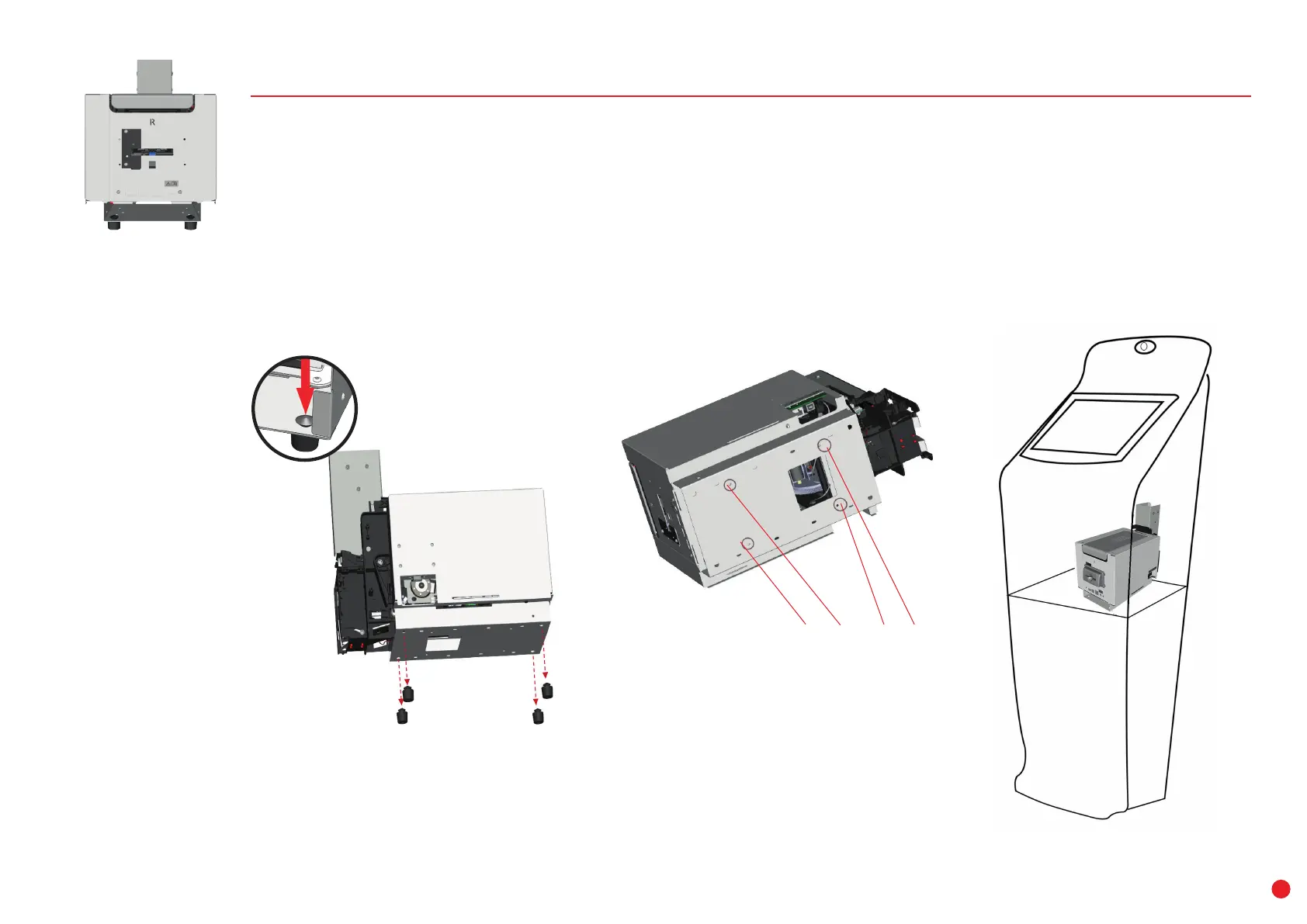 2 There are 4 holes on the bottom plate to enable you to attach the printer to the terminal.