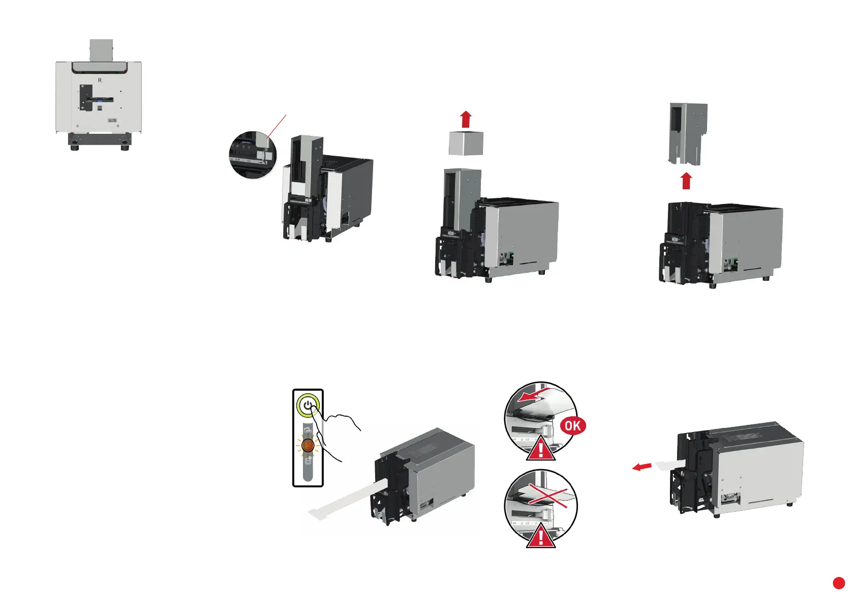 7 Double click the control button, then insert the "T" shaped card in the feeder as shown. Cleaning starts.