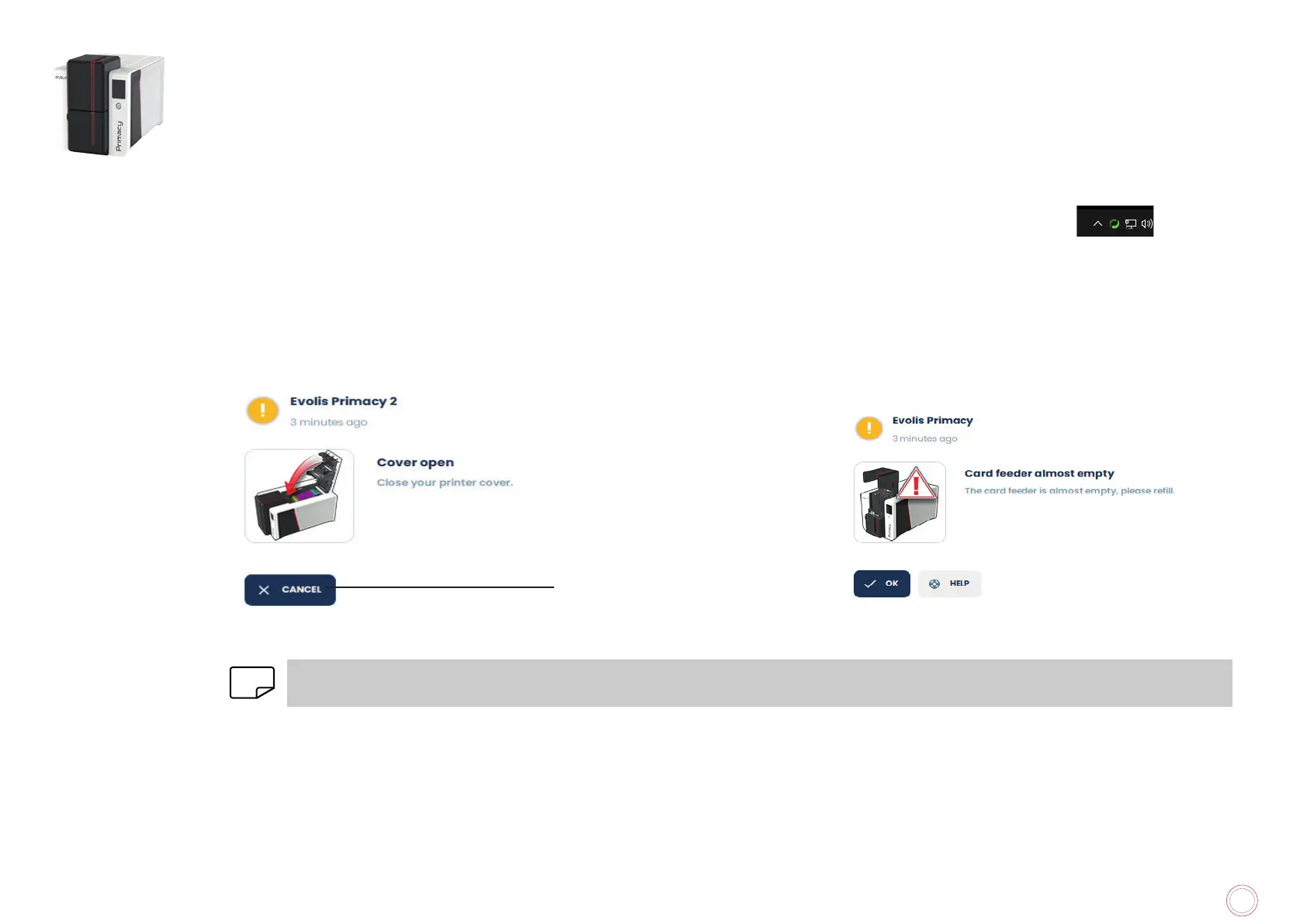 When the Evolis Premium Suite is active, a small icon is displayed in the bar on the bottom right of your computer screen.