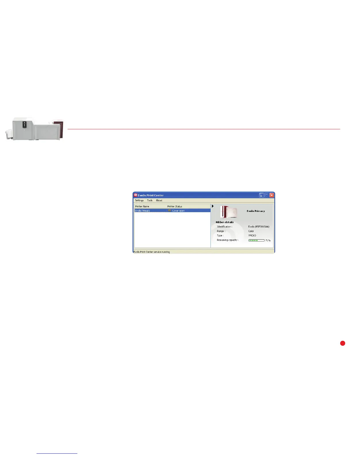 A graphic application called Evolis Print Center is available to help you if necessary to change certain predefined settings.