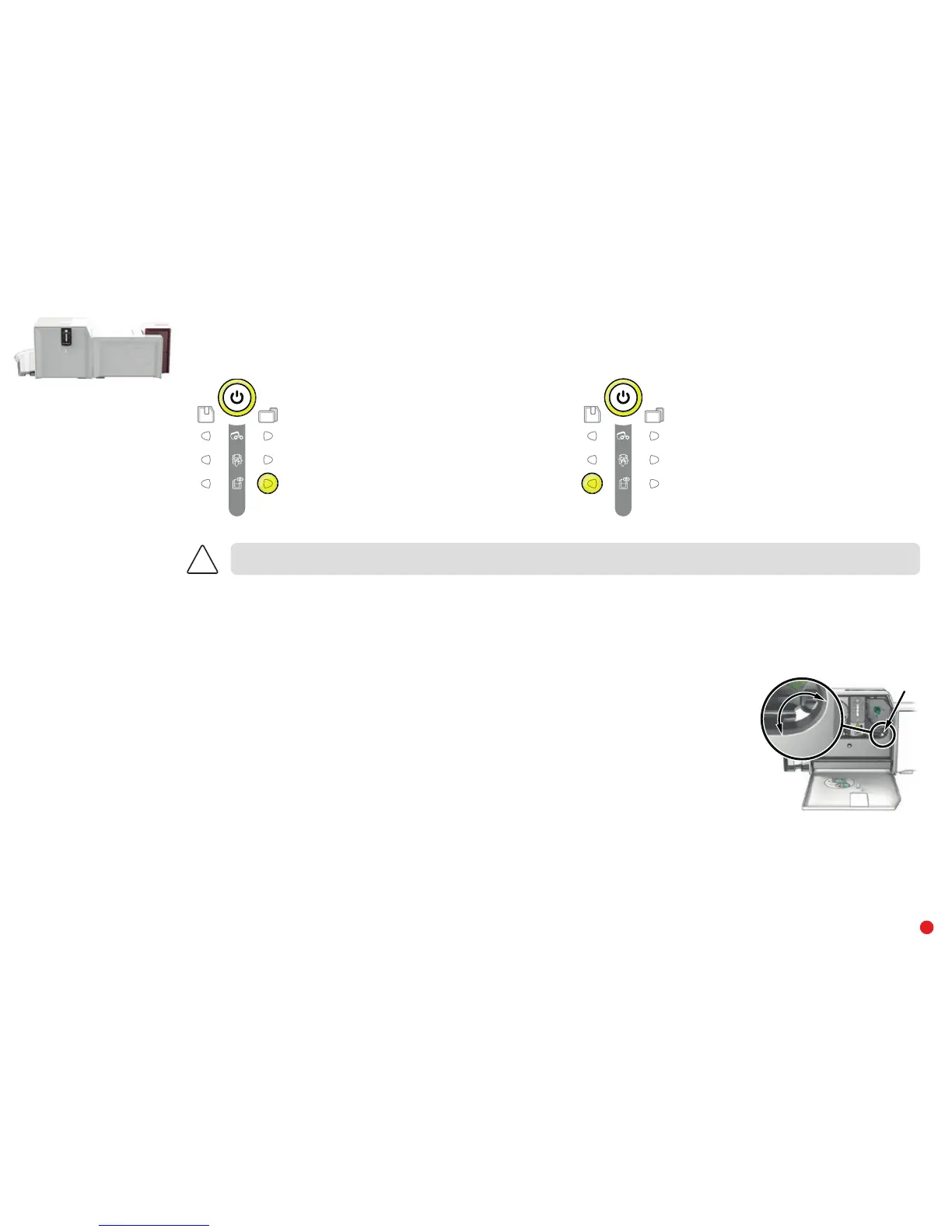 2 Press the control button to activate the card transport rollers. If the card is still stuck inside the printer, slide it manually towards the printer