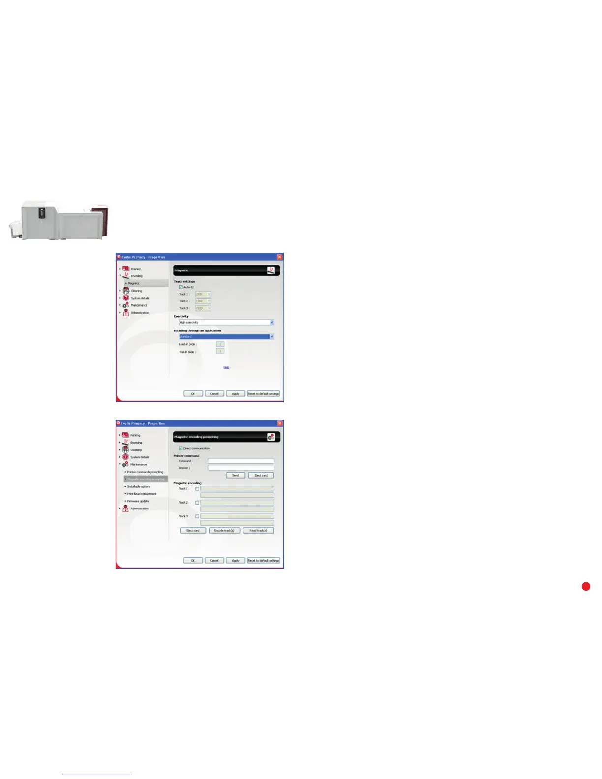 When first installing the Evolis Print Center, the magnetic encoder functions may need to be configured. The magnetic encoder functions are accessible