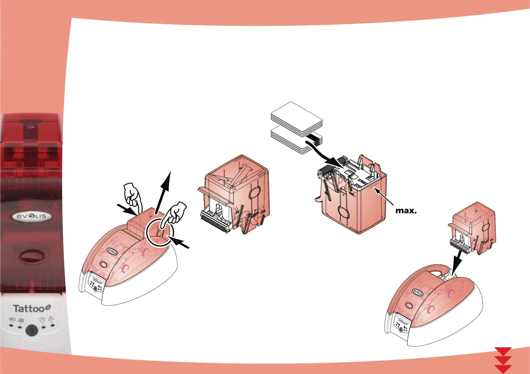 Lower the spring system as shown and insert a maximum of 100 x 0.76 mm magnetic cards