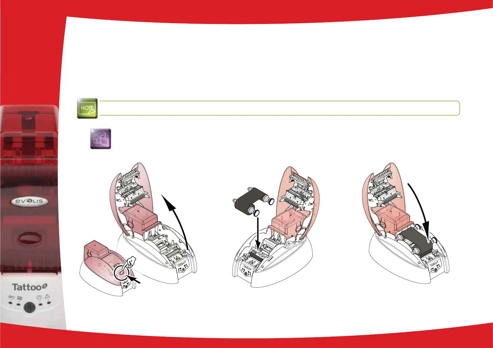 For optimum print quality, Evolis recommends that the printer is fully cleaned every time the ribbon is changed. See the Servicing and
