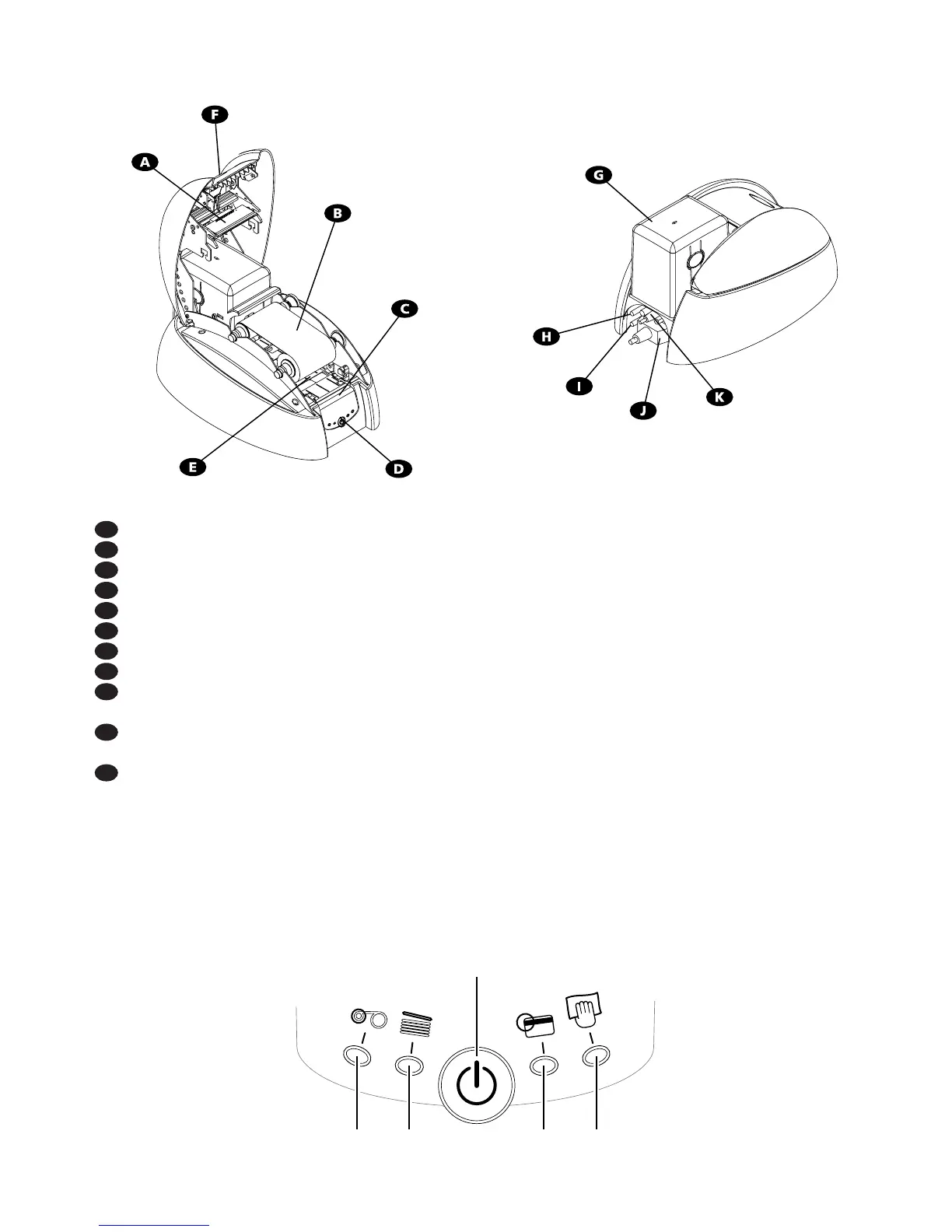 H Electrical connector For connecting the printer to the power supply.