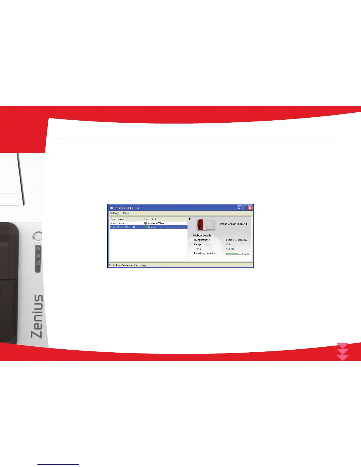 A graphic application called Evolis Print Center is available to help you if necessary to change certain predened settings.