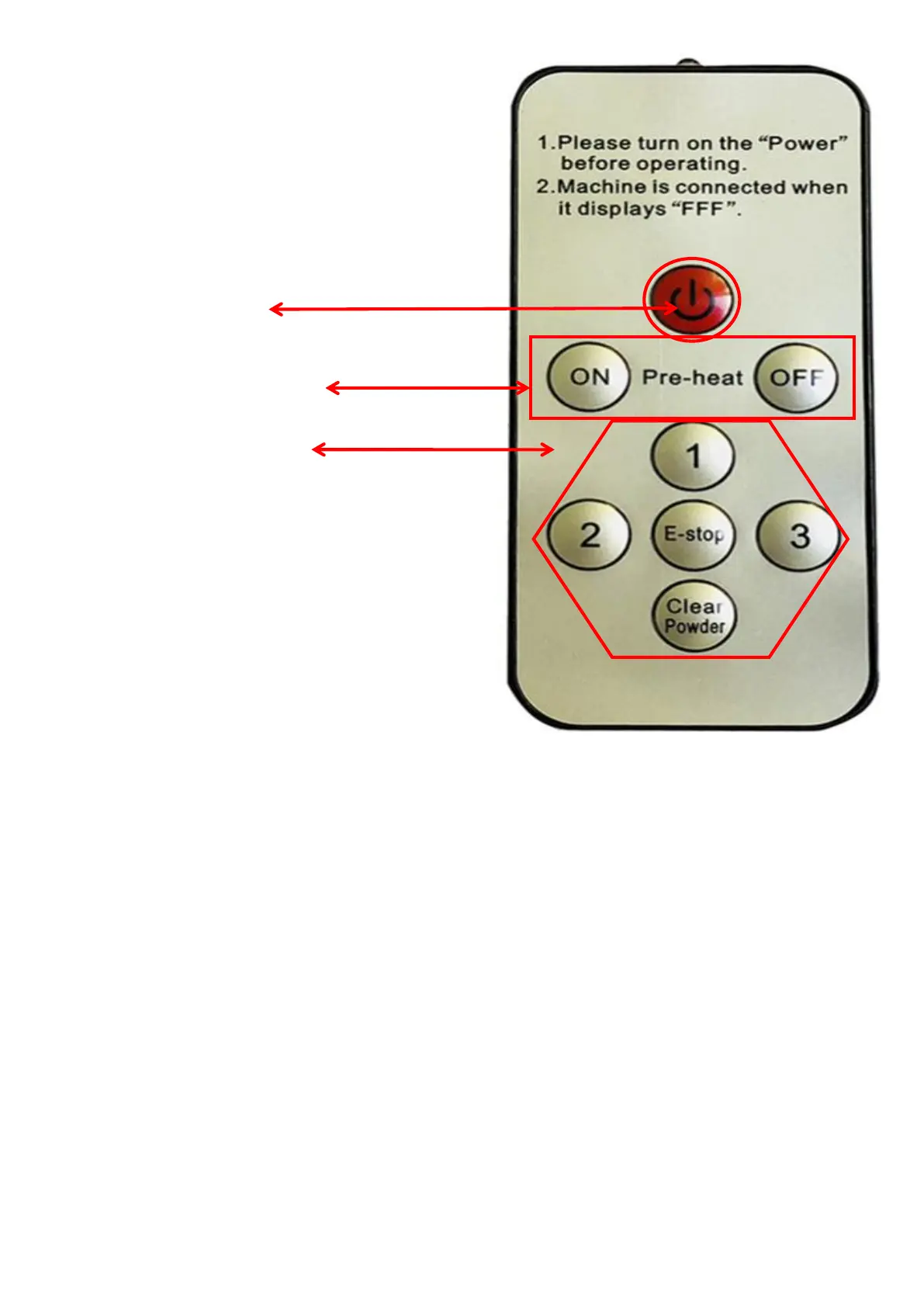 displays “FFF”. Next, machines in Group B are on, press the red button on the B remote
