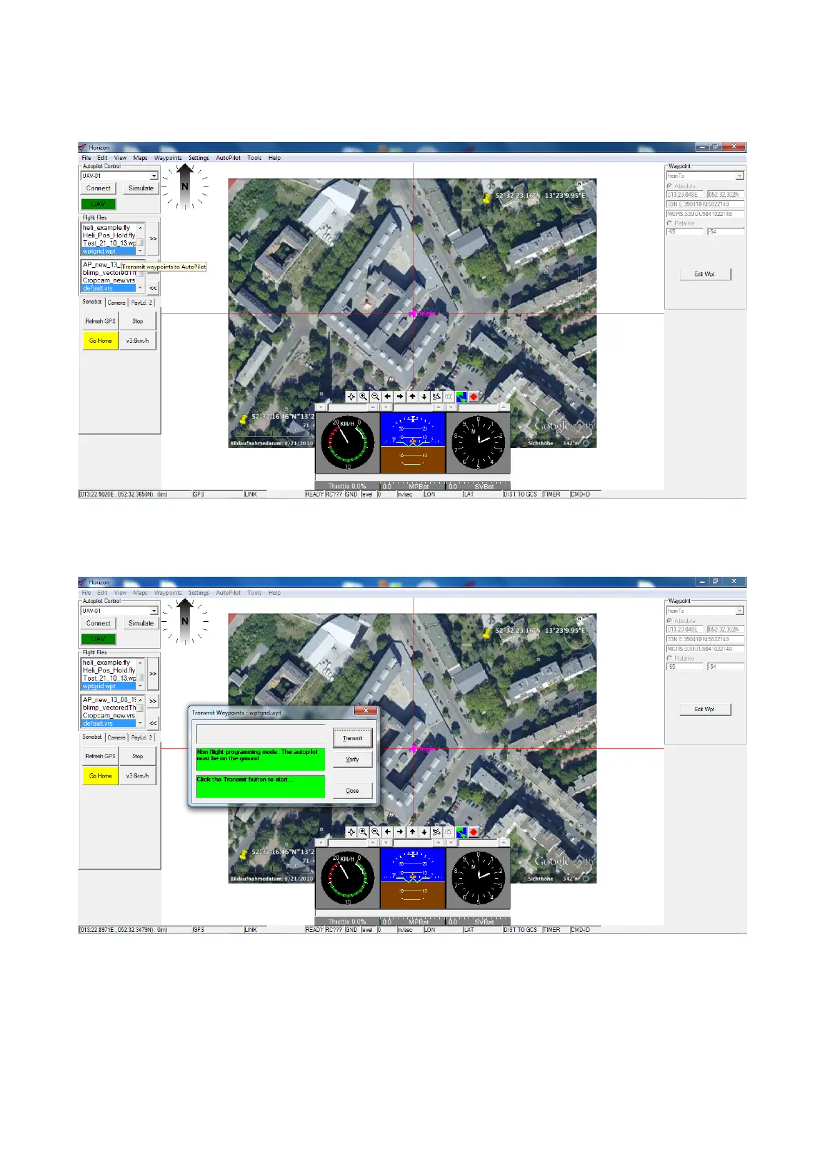 • In the Flight Files list in the left control panel, select the waypoint file you want to transmit to the autopilot for the