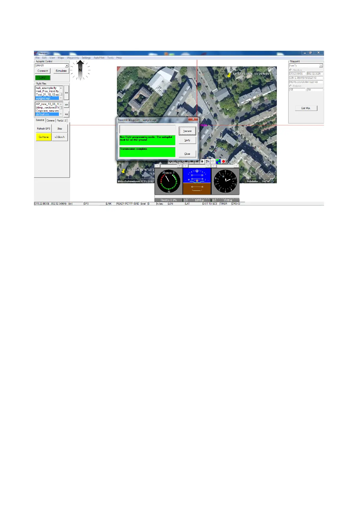 Figure 47: Horizon: transmit the waypoint file