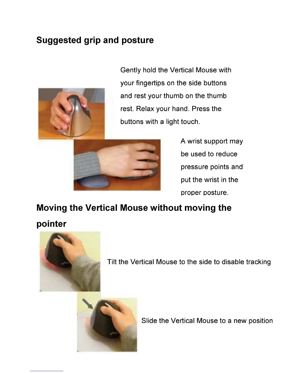 Evoluent VM4SW - Mouse Usage and Comfort; Suggested Grip and Posture; Moving the Mouse Without Moving the Pointer