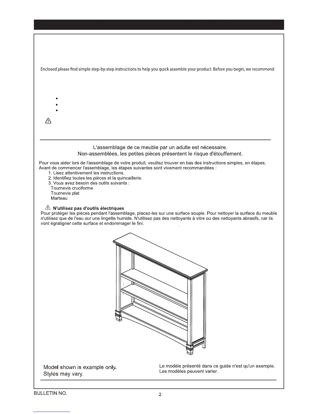 A SSEMBLY I N STRUCTION S - Instru ctions pour l'assembla g e