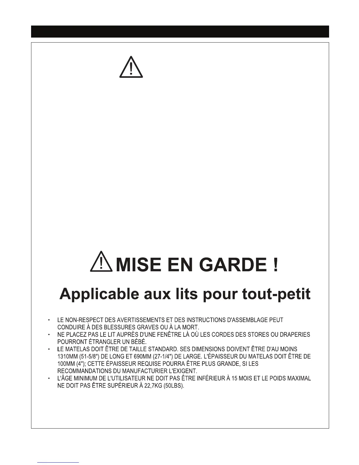 • THE MATTRESS INTENDED FOR USE ON THIS BED SHALL BE A FULL-SIZE CRIB