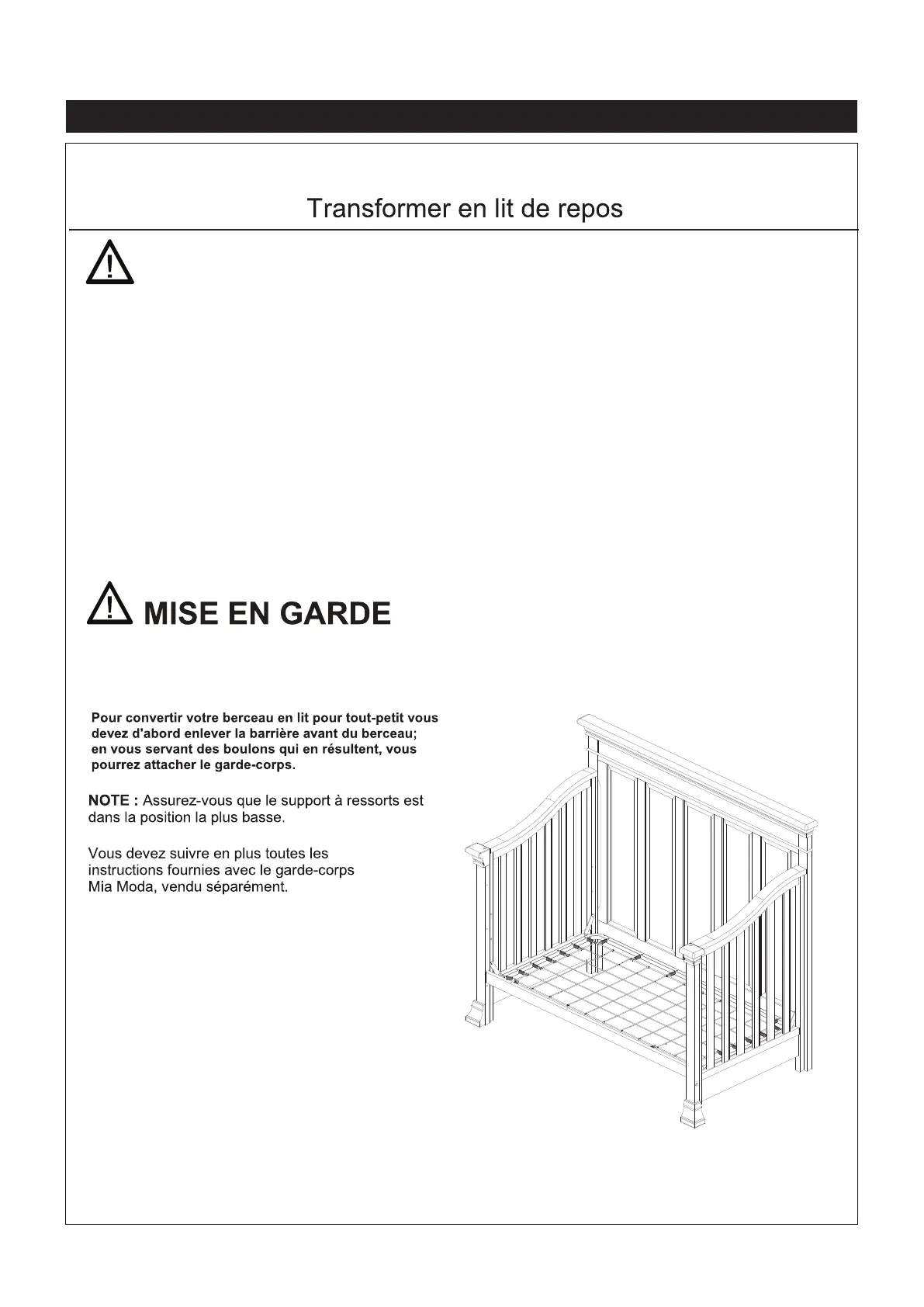 Garde-corps et barre stabilisatrice (Non inclus vendu séparément )