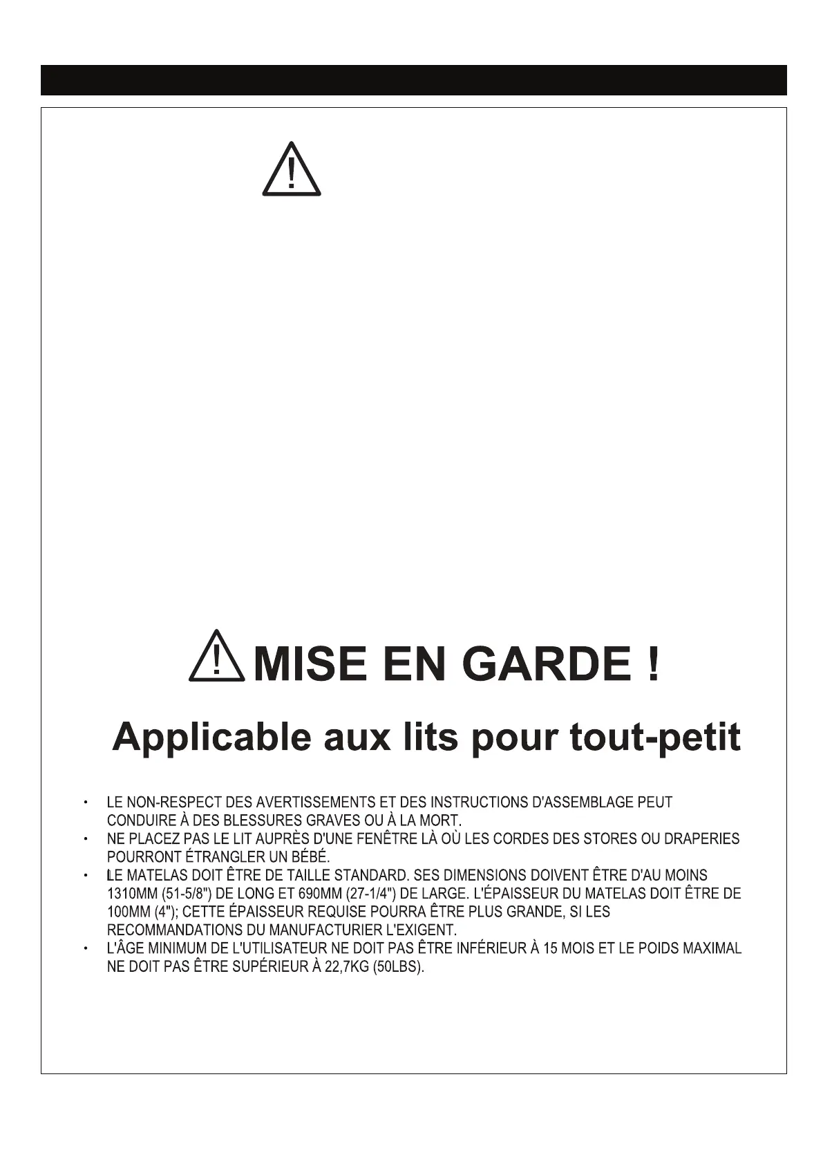 • THE MATTRESS INTENDED FOR USE ON THIS BED SHALL BE A FULL-SIZE CRIB
