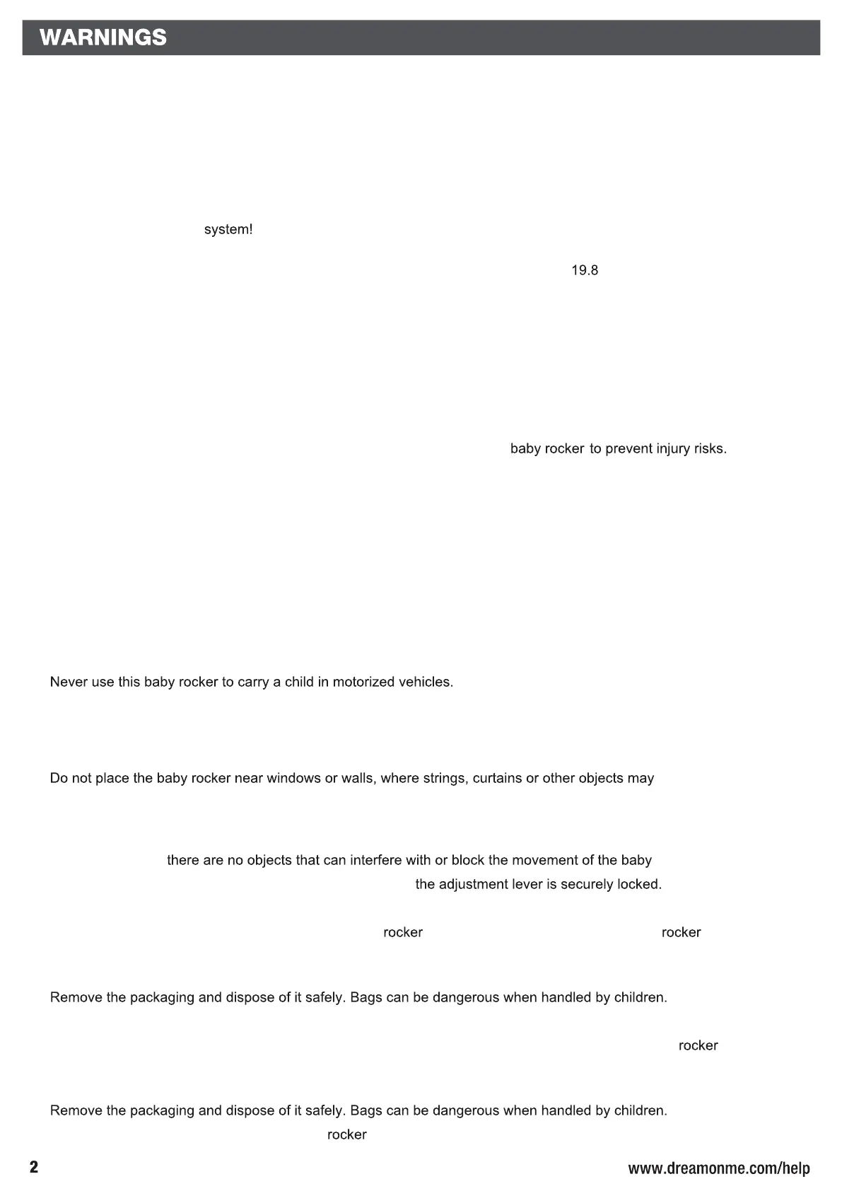• Never leave the baby rocker on surfaces which are not perfectly leveled.
