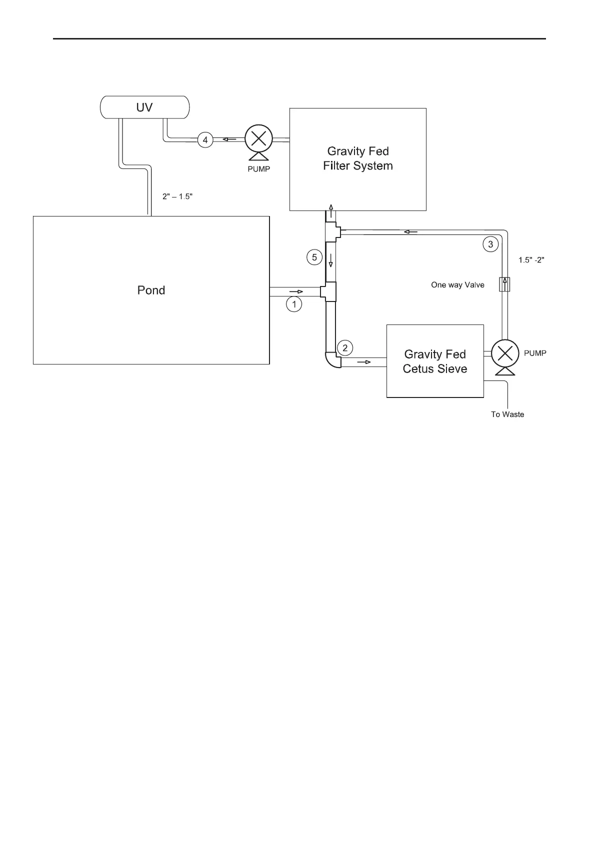 1) Wa te r le a ve s the p o nd via a 4” b o tto m d ra in a nd tra ve ls to the fi rst T-p ie c e