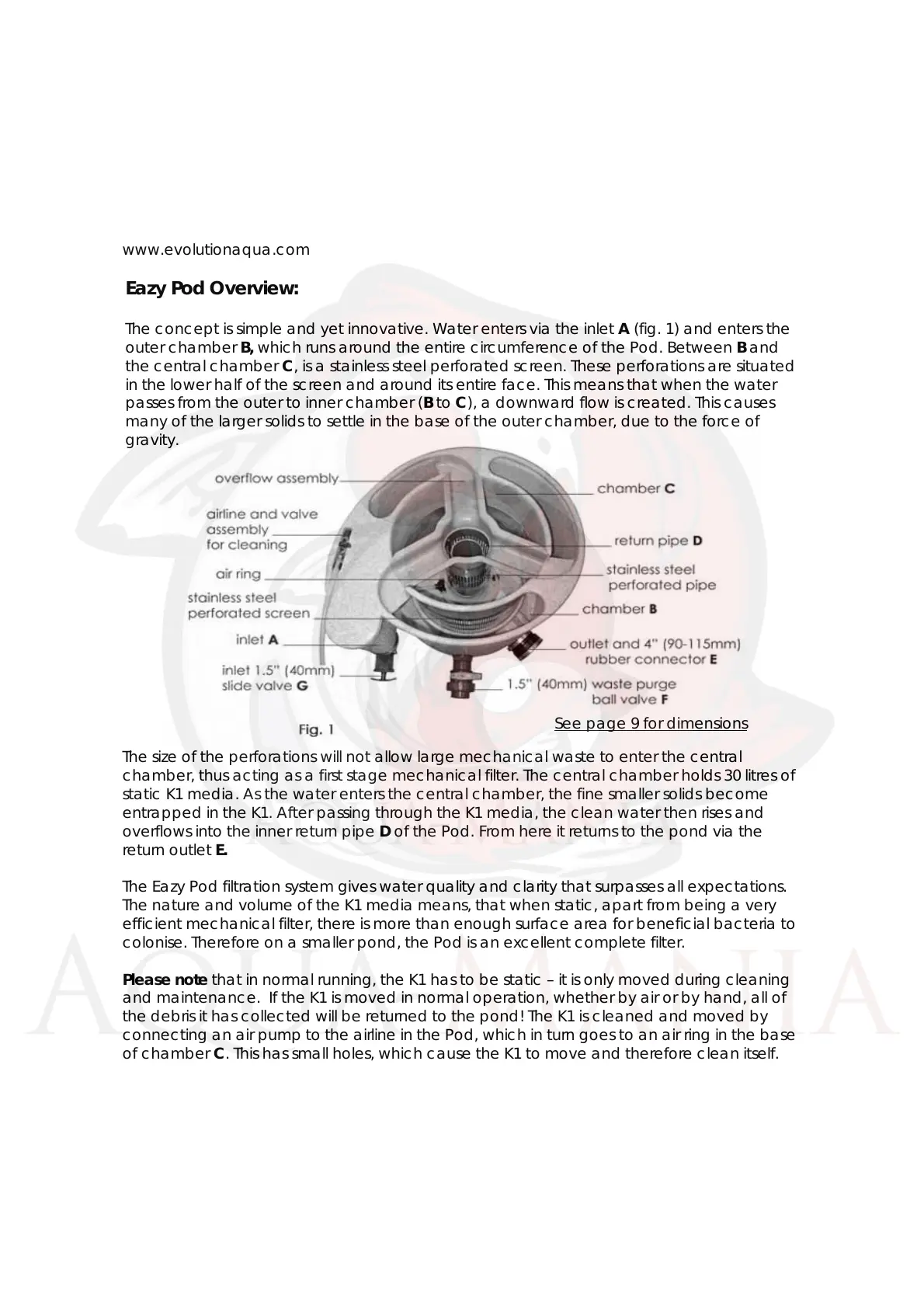 overflows into the inner return pipe D of the Pod. From here it returns to the pond via the