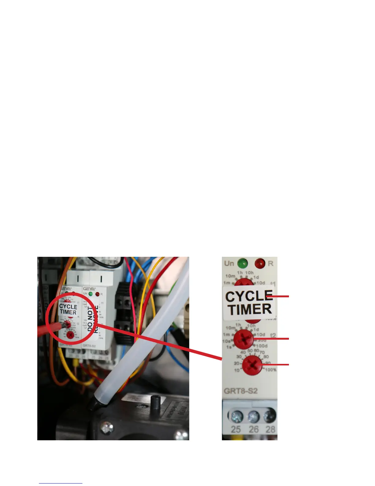 This time period can be easily adjusted by changing the CYCLE TIMER located inside the control box.