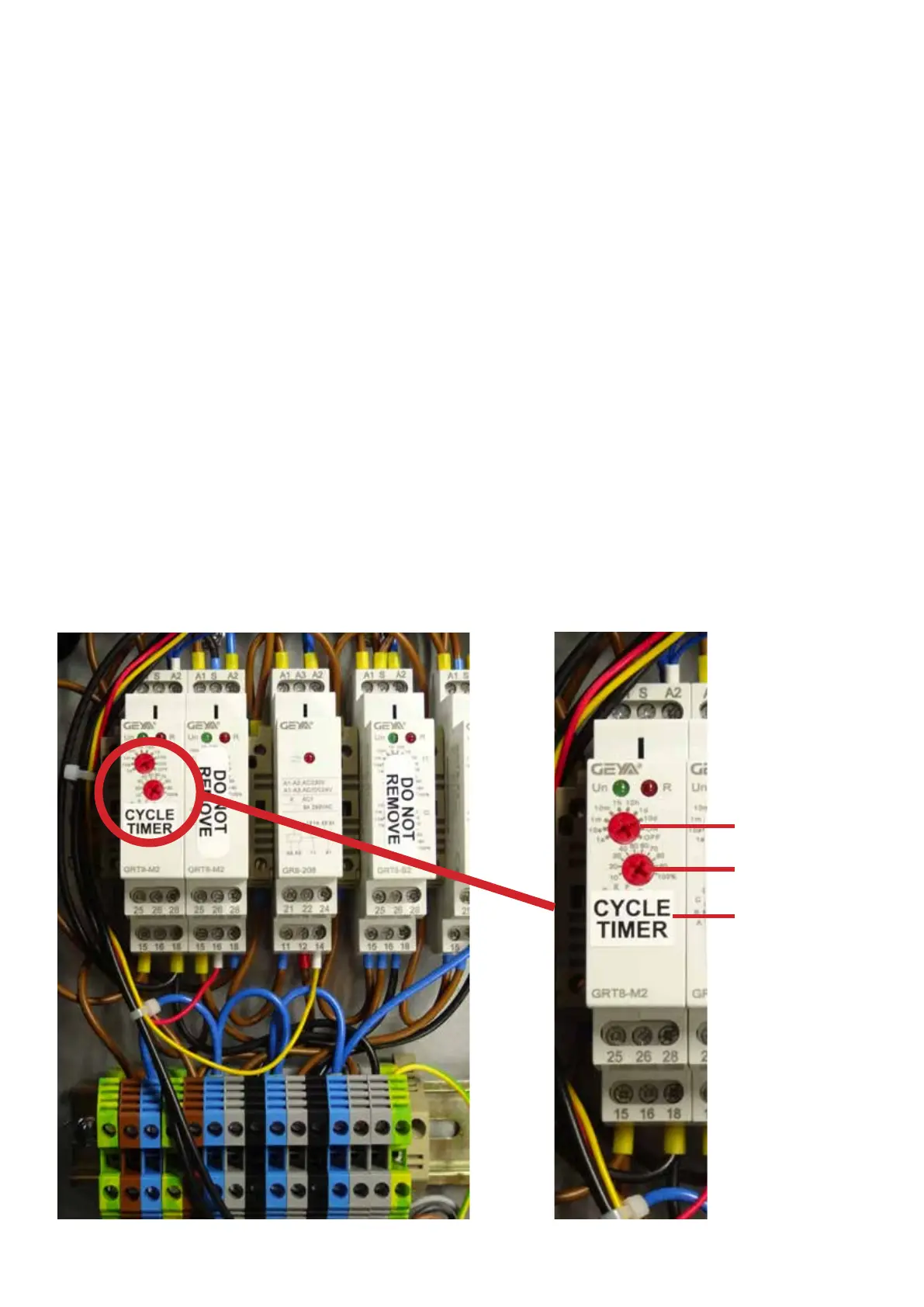 This time period can be easily adjusted by changing the CYCLE TIMER located inside the control box.
