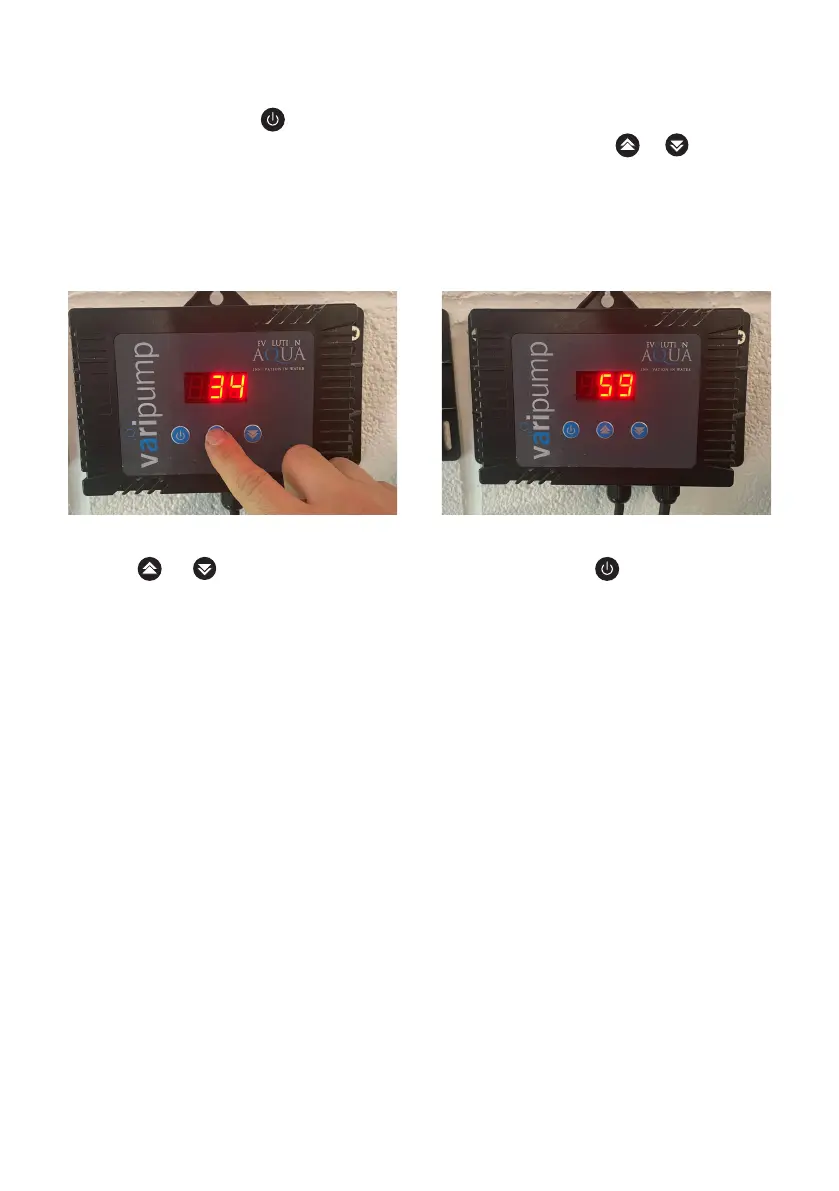 Once connected, use the button to turn the Varipump on or off. The display shows the
