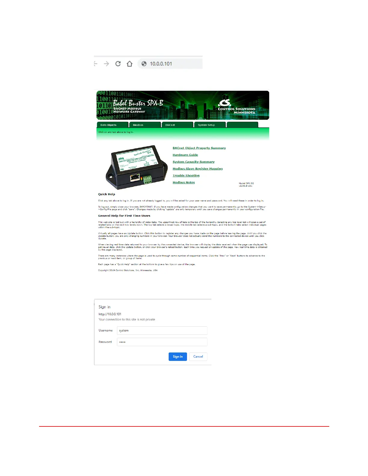 5. Open an Internet browser and enter 10.0.0.101 in the address bar and press