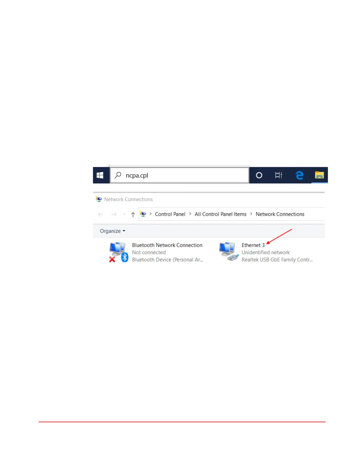 2. Enter “ncpa.clp” in the search box in the task bar to launch the Network