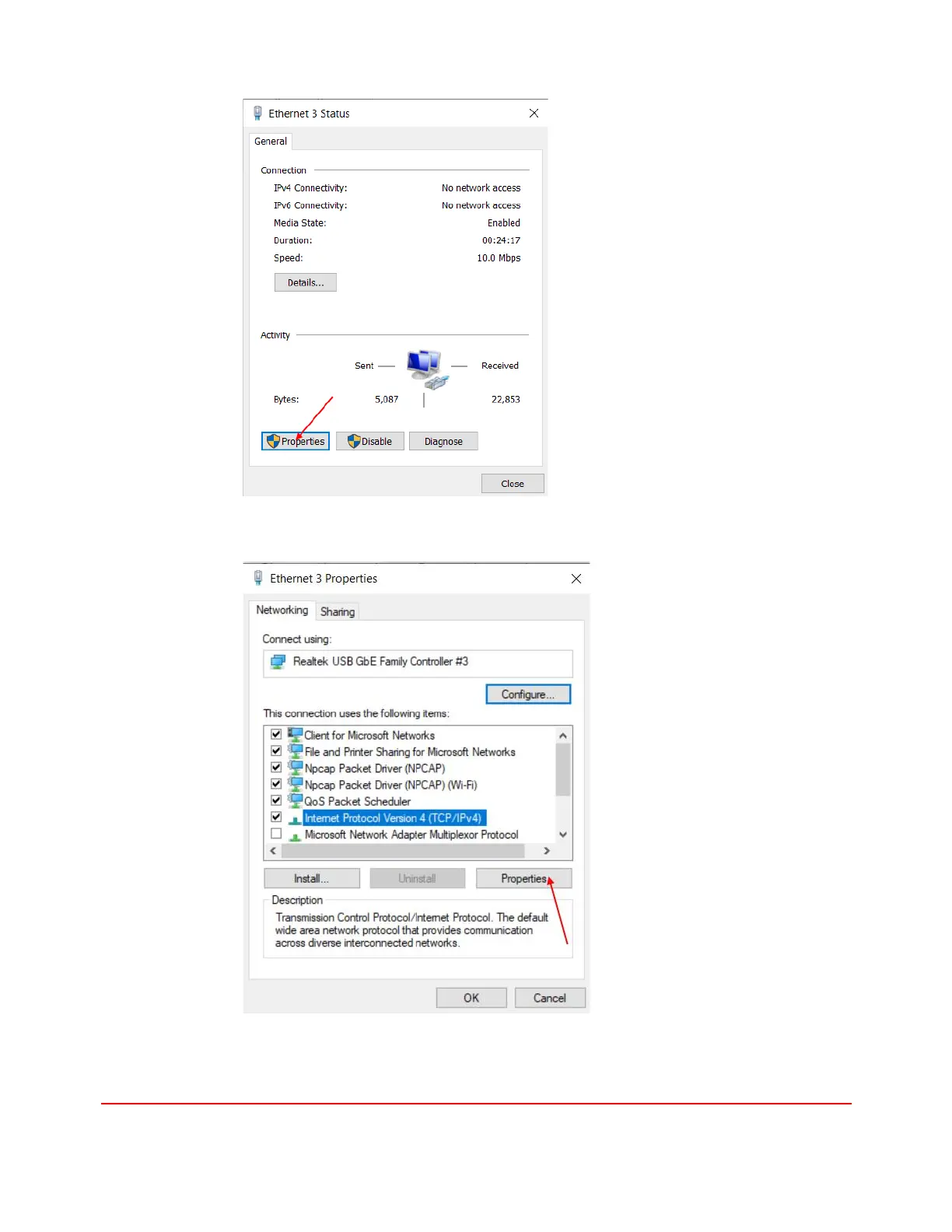 4. In the Properties dialog, select Internet Protocol Version 4 (TCP/IPv4) and click