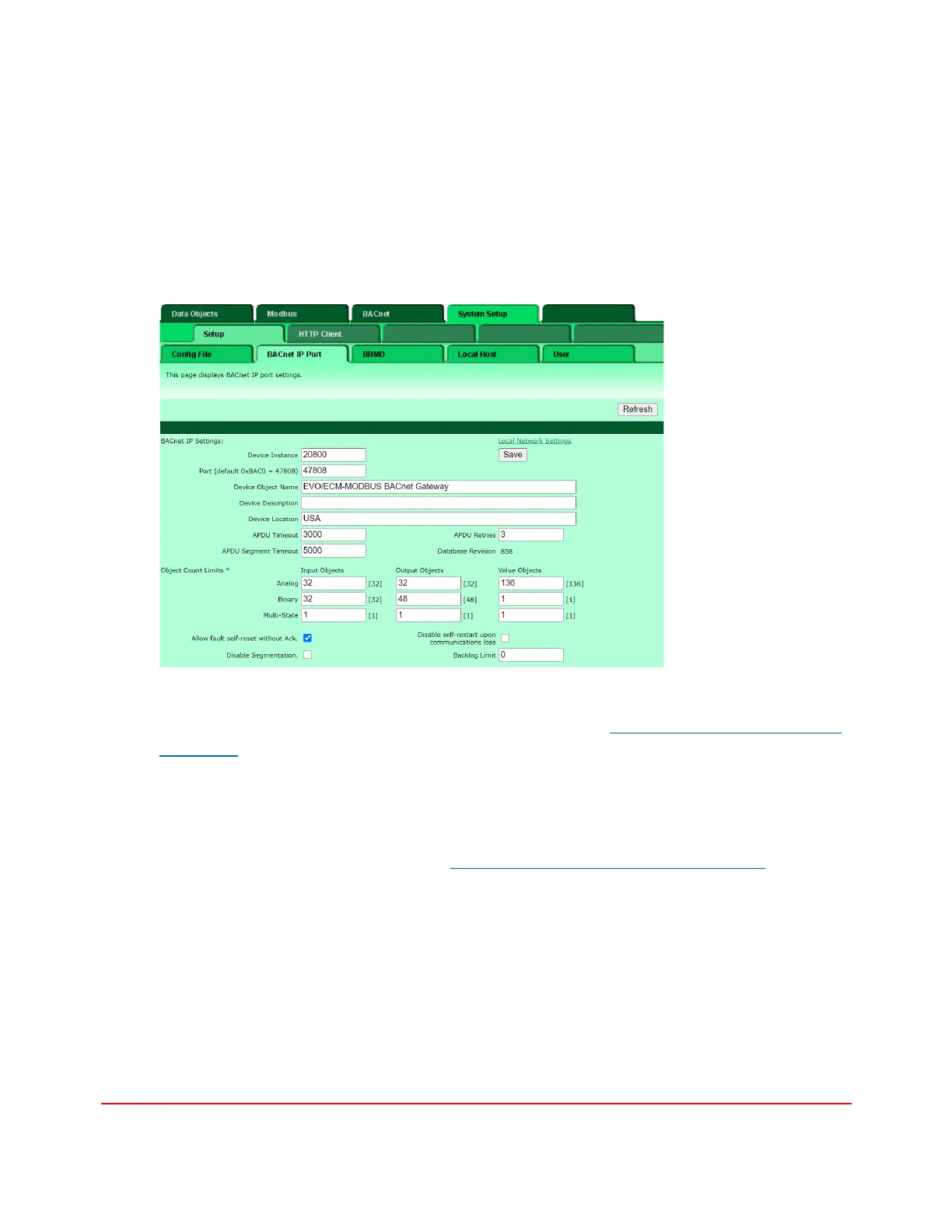 Setup>BACnet IP Port to enter the Device Instance for each gateway. The default UDP
