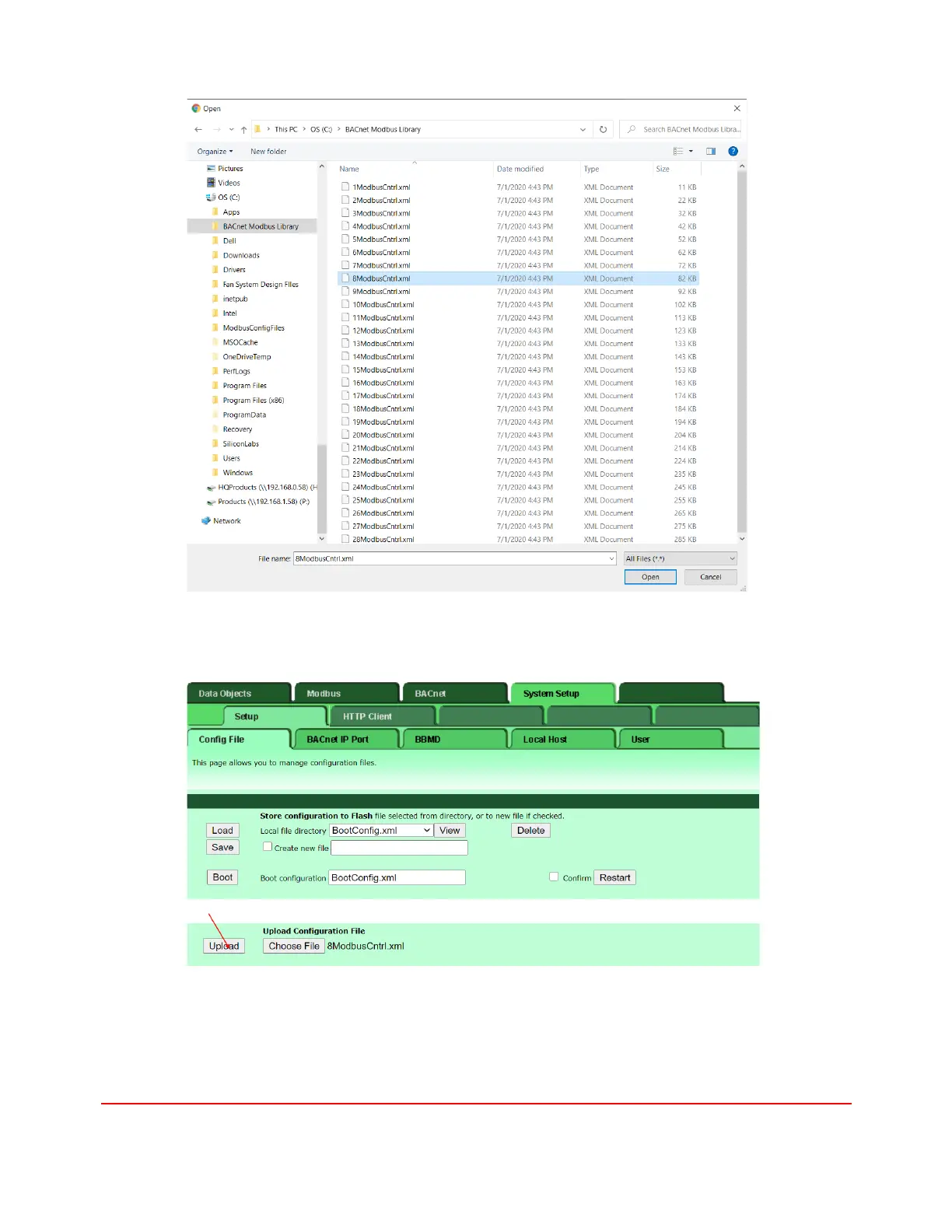 3. Click the Upload button to upload the selected file to the gateway in the Config File