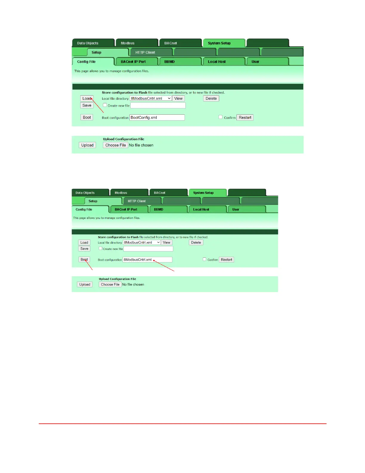 7. Enter the name of the selected file into the Boot Configuration box and press the Boot