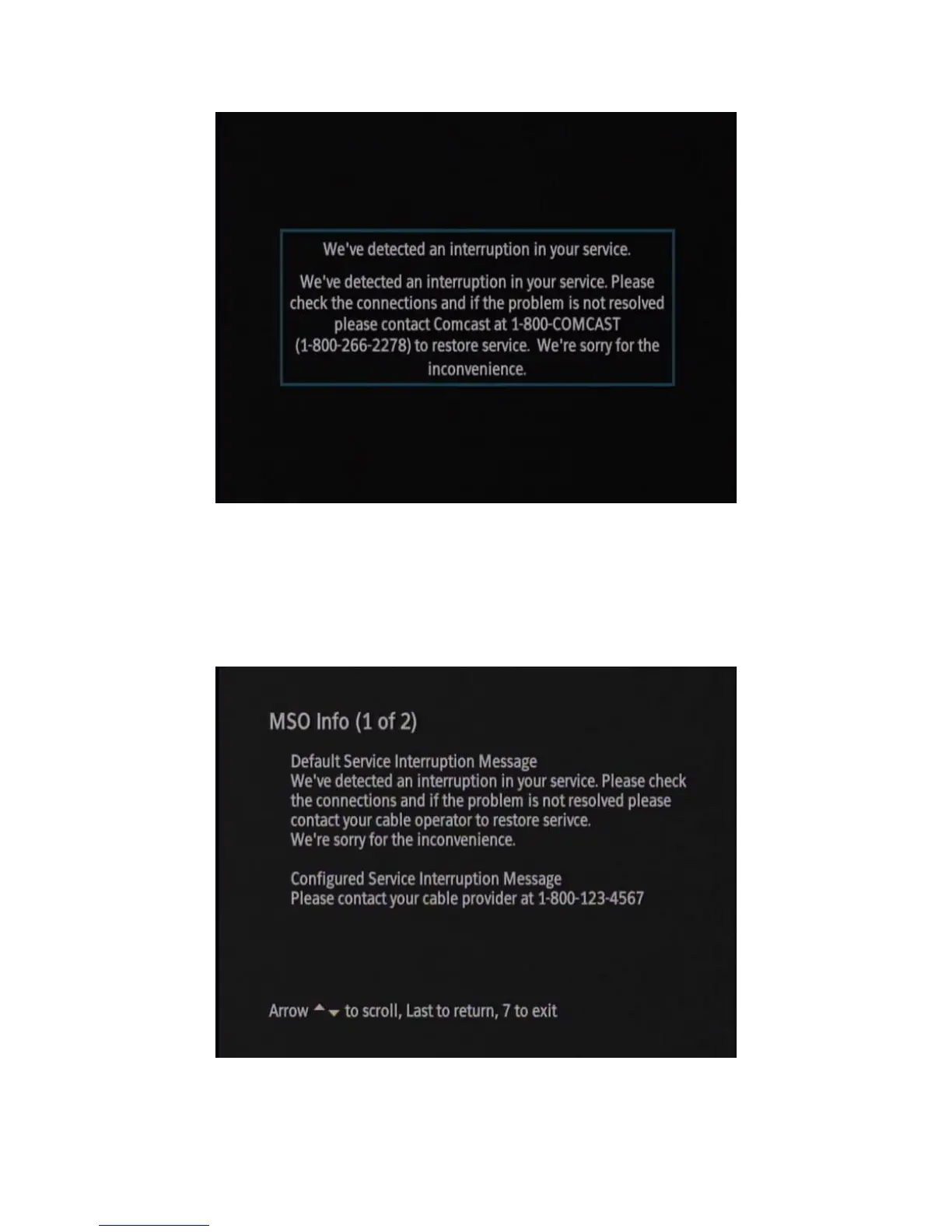 Figure 31 Service Interruption Message with Default MSO Phone Number