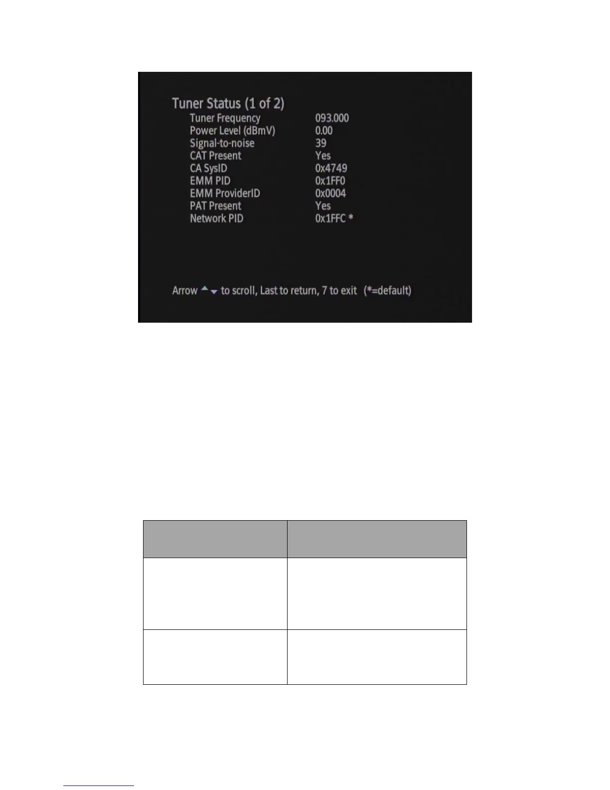 Figure 34 Diagnostic Menu Tuner Status