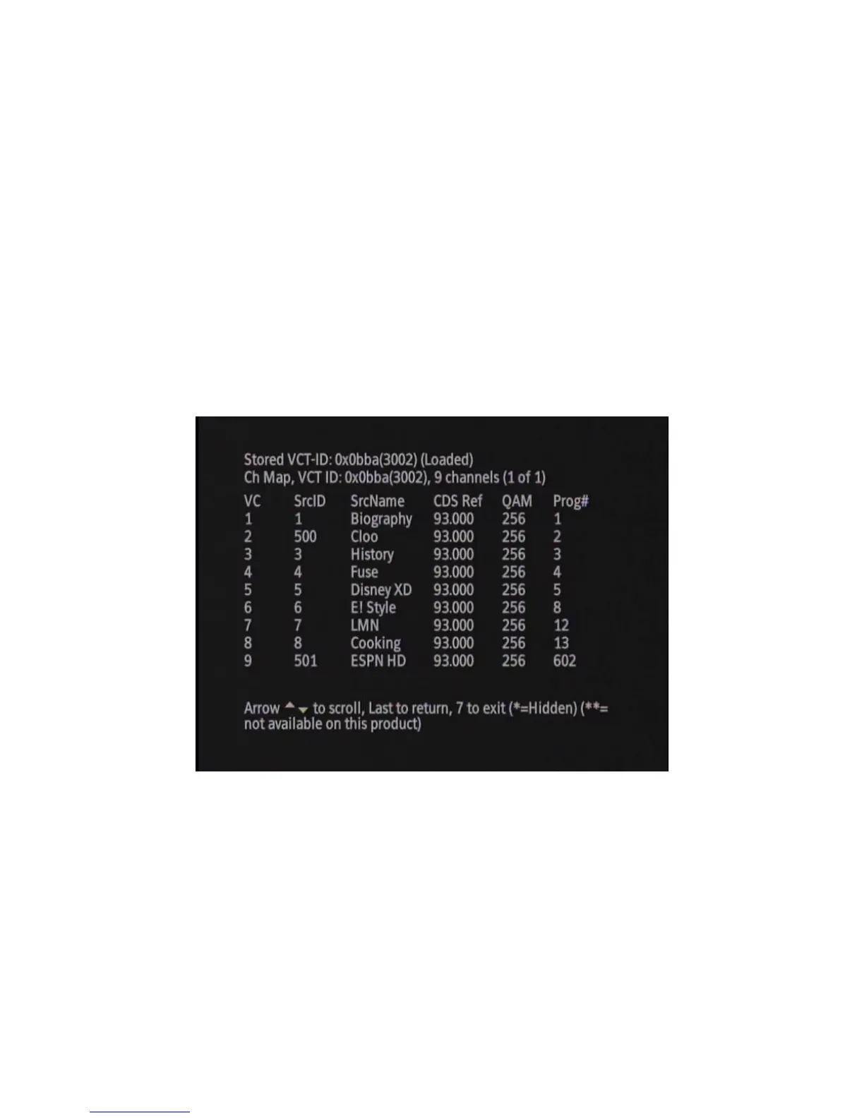 VCT-ID of the channel map that is currently loaded and active; note the VCT-IDs match. Please note that the VCT-