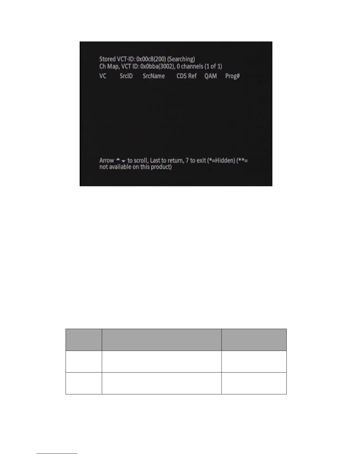 Figure 24 Virtual Channel Map Diagnostic Screen, Change in VCT-ID