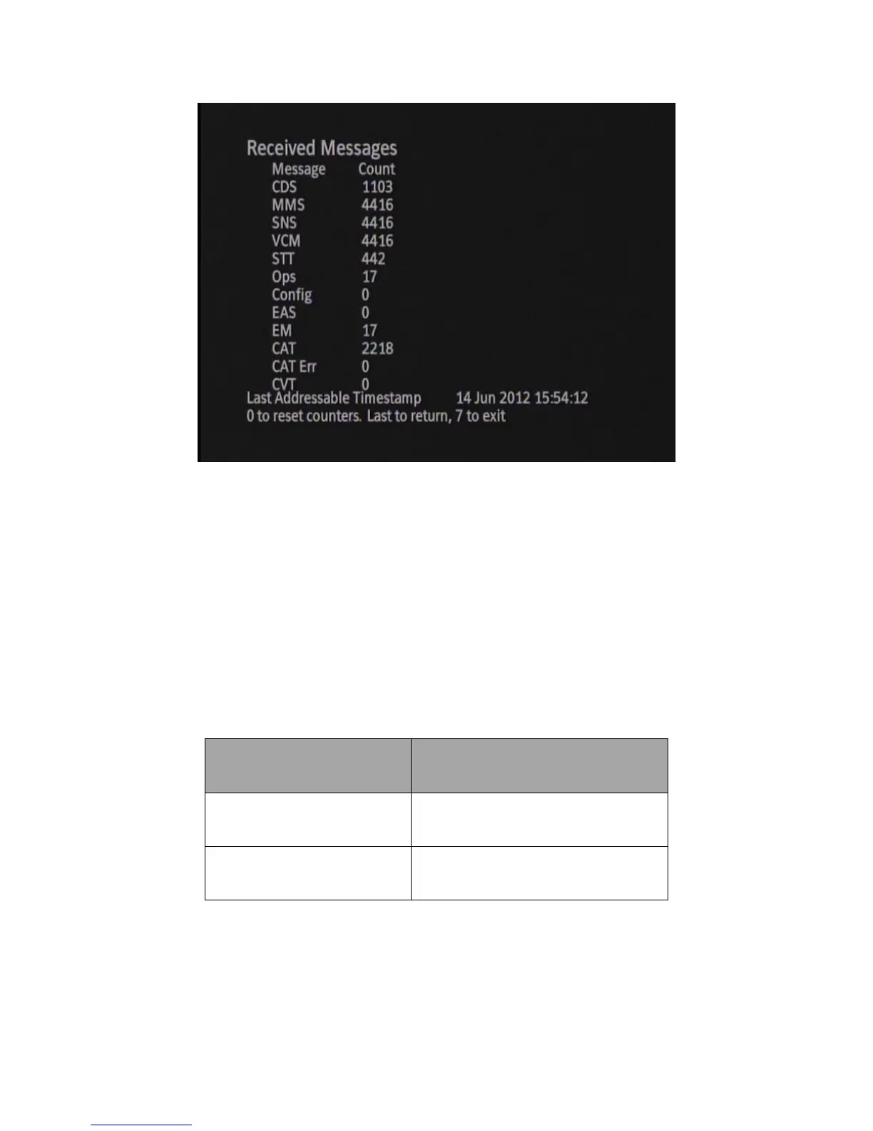Figure 37 Diagnostic Menu – Received Messages
