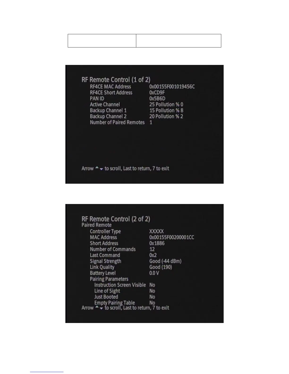 Evolution Digital HD uDTA - Figure 43 Diagnostic Menu - RF Remote Control, Screen 1; Figure 44 Diagnostic Menu - RF Remote Control, Screen 2