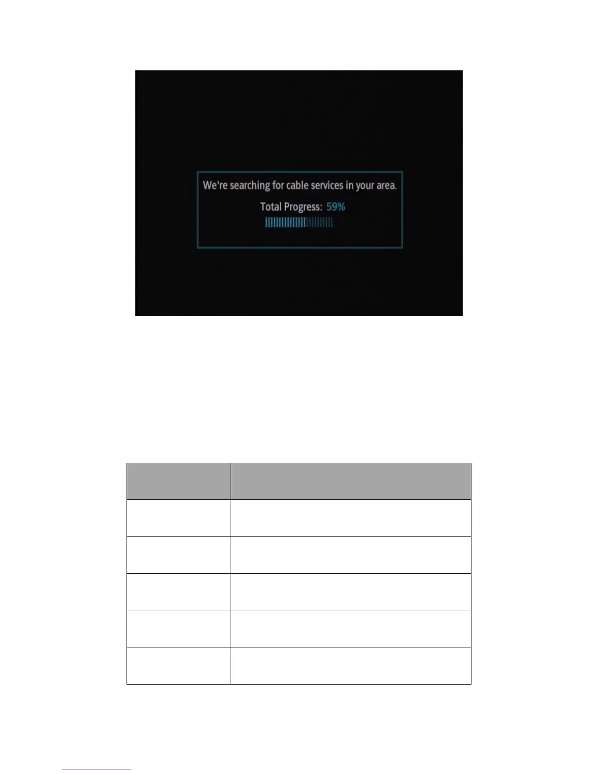 This message is displayed while the DTA performs its initial hunt for QAM lock and CAT with CA system ID