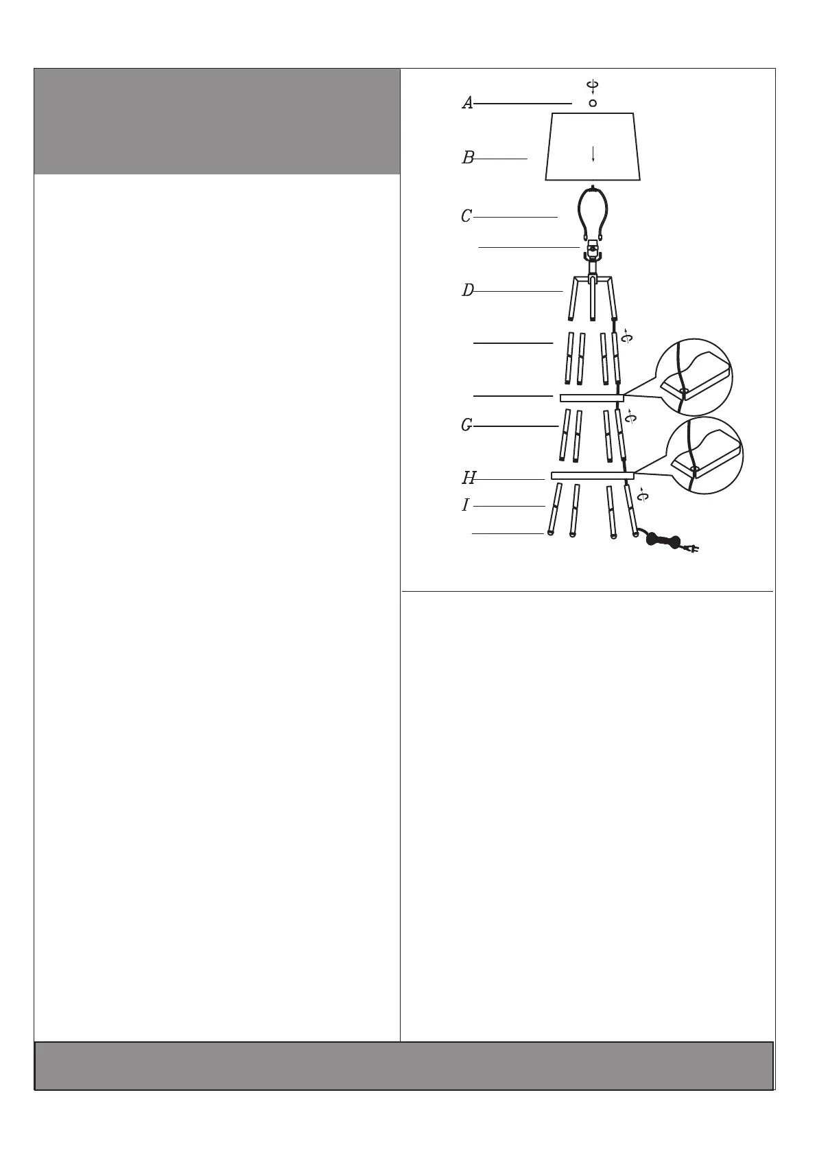 4. Instale la bombilla (no incluida) en el portalámparas (J).