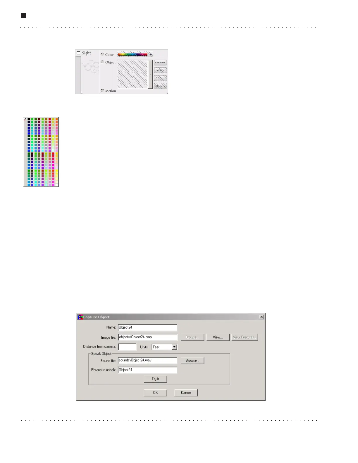 The Object pulldown menu allows you to specify visual recognition of an object as the