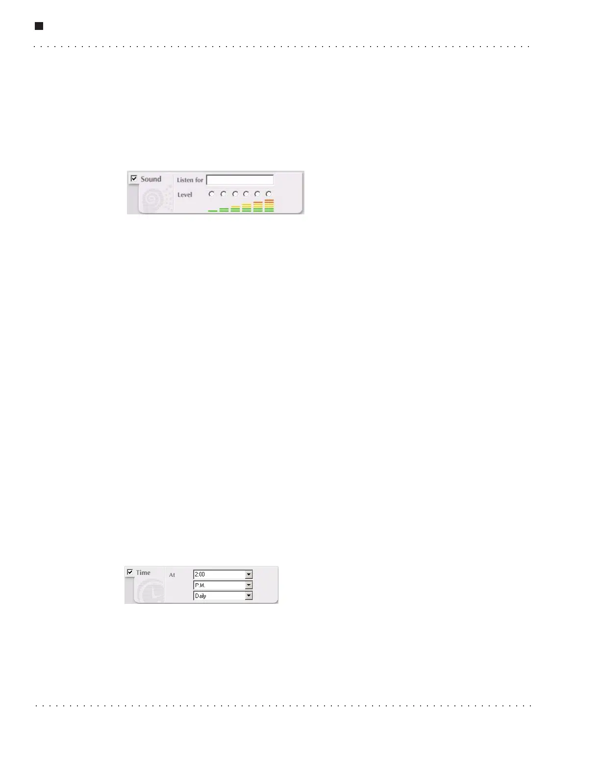• Level - Select one of the six sound levels by clicking on one of the six radio