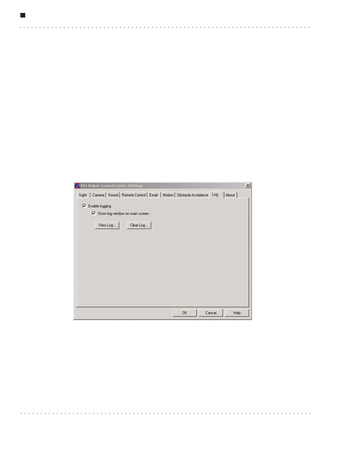 The Log tab is used to adjust the RCC logging function. The log file is a good place to