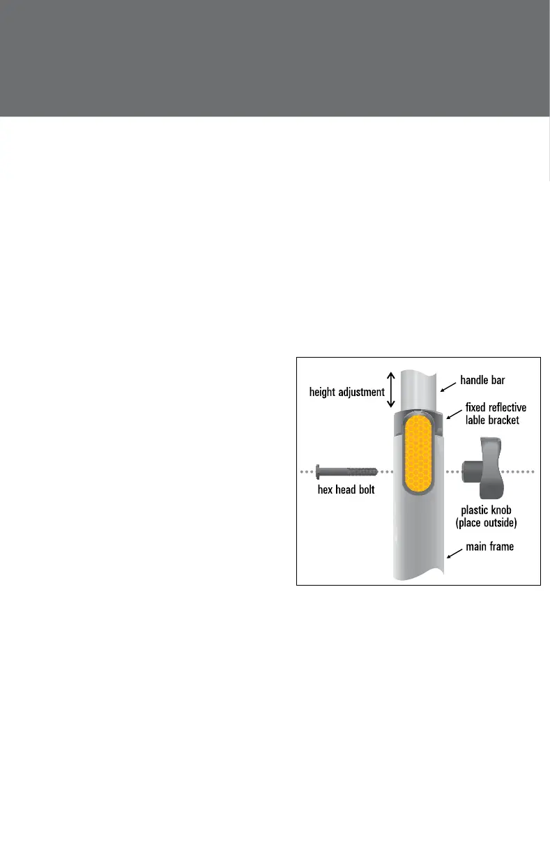 3. Adjust handle height. Put Knob Bolts through from inside. Tighten until it is snug.