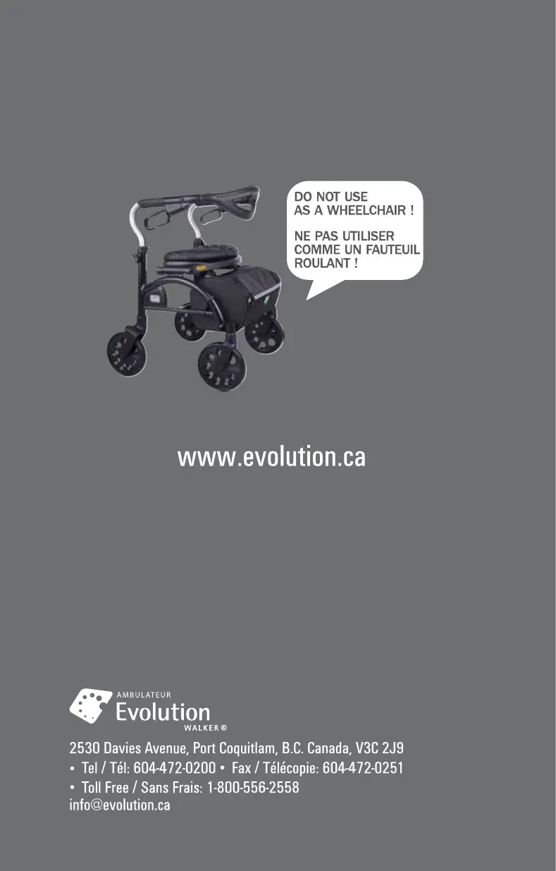 walker has been misused. Your Evolution dealer will be happy to assist you in arranging the return of