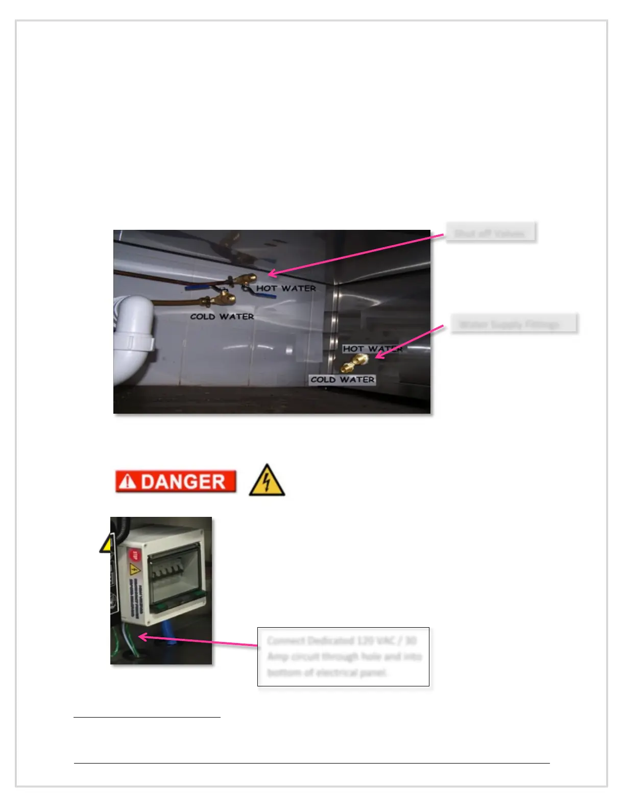 Water connection should be brought to the unit with external shut off valves to assist in connect