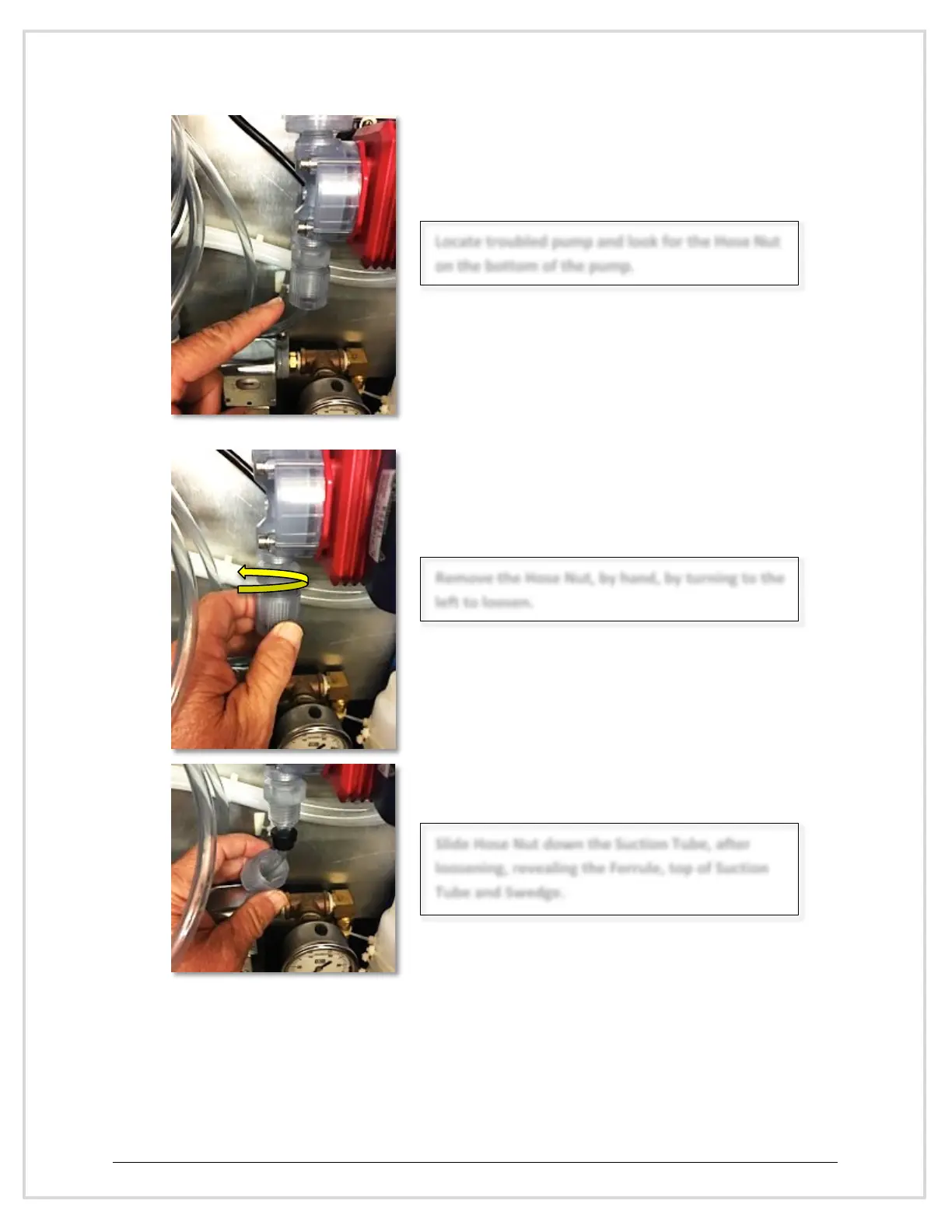 Locate troubled pump and look for the Hose Nut