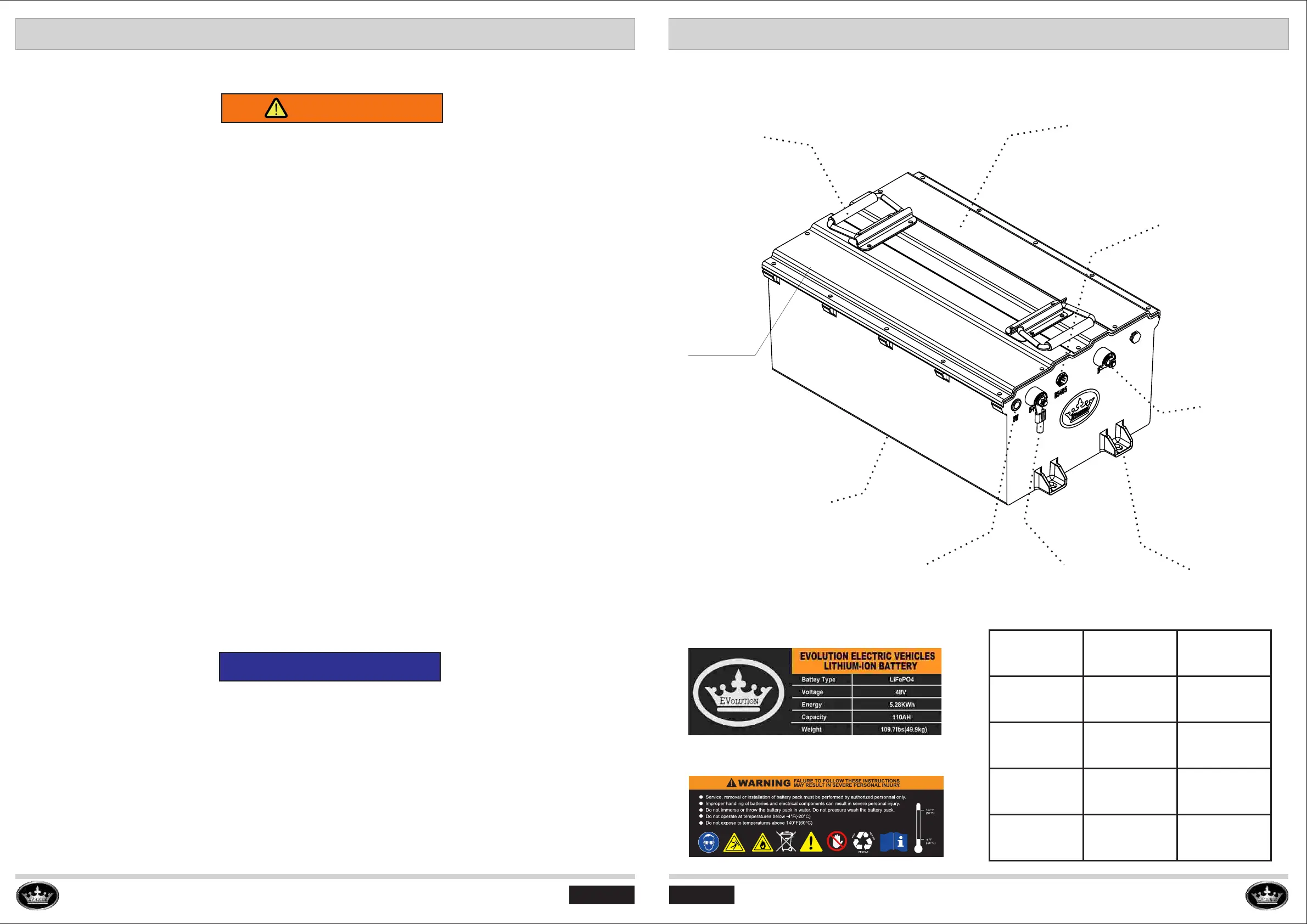 Do not remove the battery pack cover. Do not attempt to remove batteries or battery cables.
