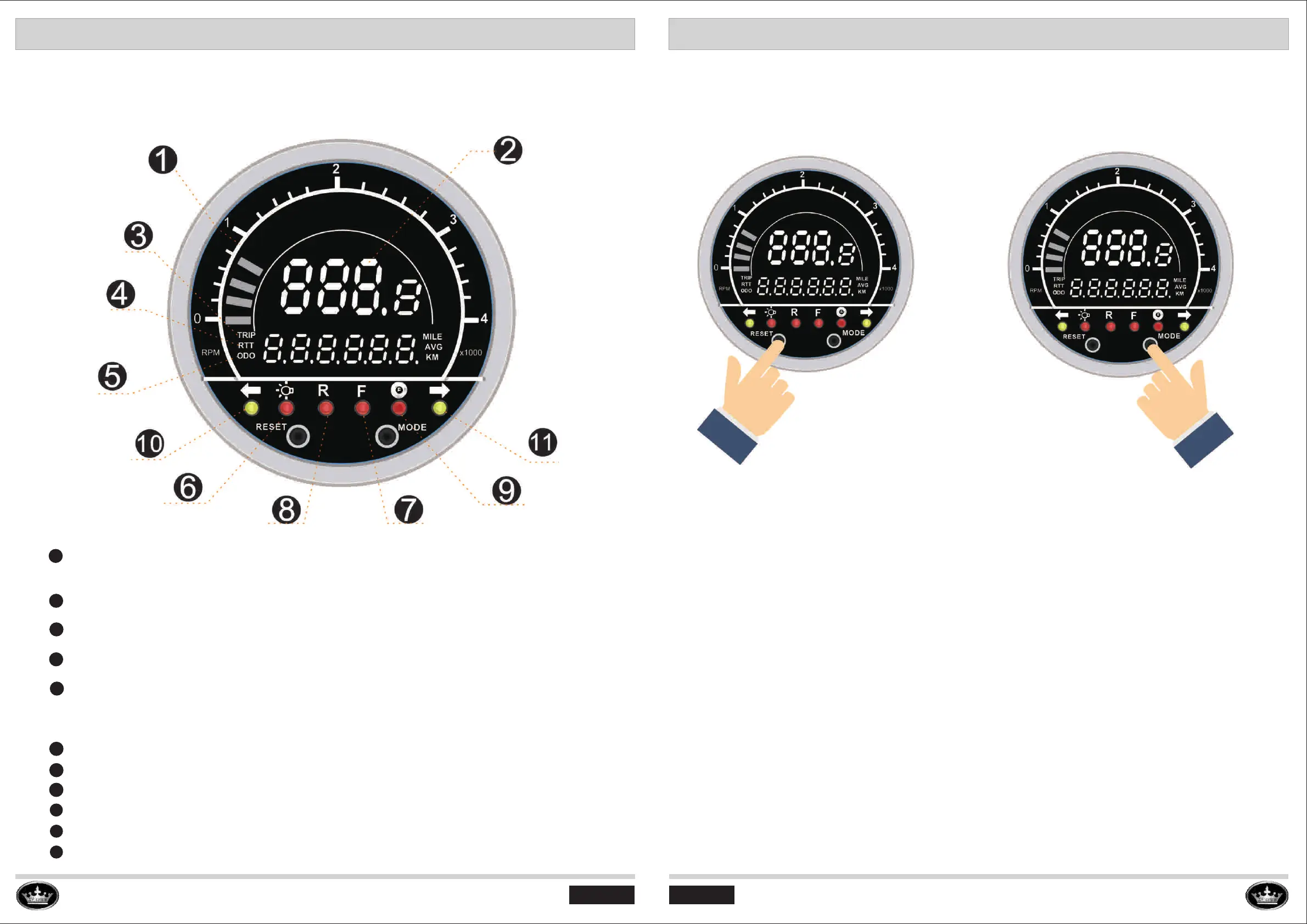 Motor Rotation Speed: shown on the top of speedometer (for example: when the